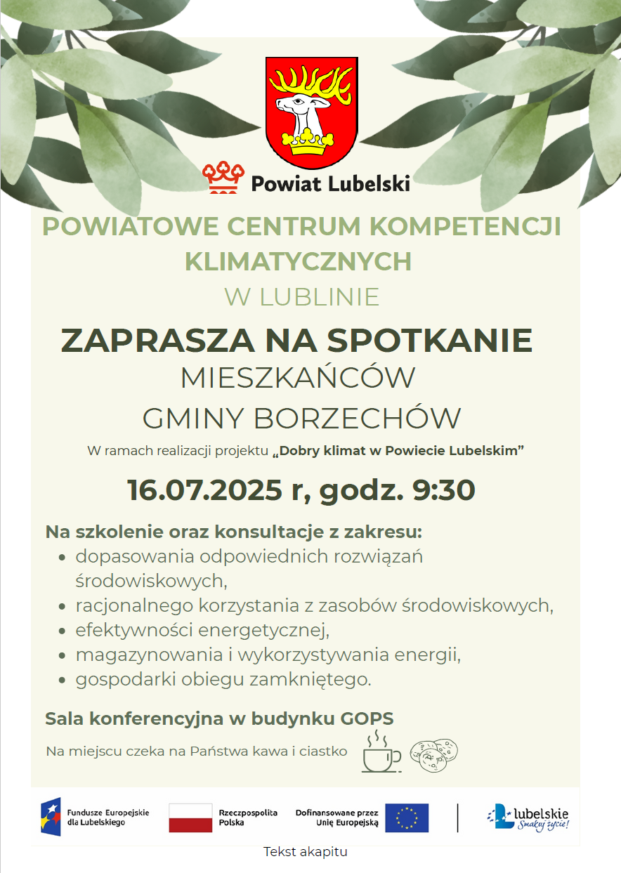 POWIATOWE CENTRUM KOMPETENCJI KLIMATYCZNYCH W LUBLINIE ZAPRASZA NA SPOTKANIE
